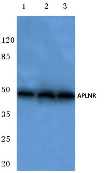 Western blot of analysis of APLNR pAb at a 1:500 dilution. |