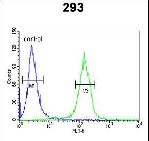 PPP3R1 Antibody (N-term) flow cytometric analysis of 293 cells (right histogram) compared to a... |