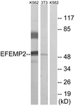 Western blot of extracts from K562/NIH-3T3 cells, using EFEMP2 Antibody. |