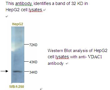 western blot analysis of hepg2 cell lysates wirh anti-vdac1 antibody |