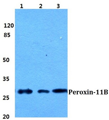 Western blot analysis of Anti-PEX11B Antibody at a 1:500 dilution. |