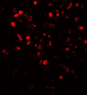 Immunofluorescence of NOX4 in human spleen tissue with NOX4 antibody at 20 ug/ml. |