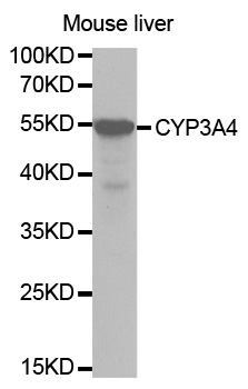 Western blot analysis of extracts of Mouse liver, using CYP3A4 antibody. |