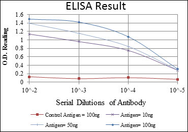 Red: Control Antigen (100ng); Purple: Antigen (10ng); Green: Antigen (50ng); Blue: Antigen (100ng);