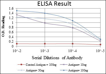 Red: Control Antigen (100ng); Purple: Antigen (10ng); Green: Antigen (50ng); Blue: Antigen (100ng);