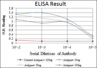 Red: Control Antigen (100ng); Purple: Antigen (10ng); Green: Antigen (50ng); Blue: Antigen (100ng);