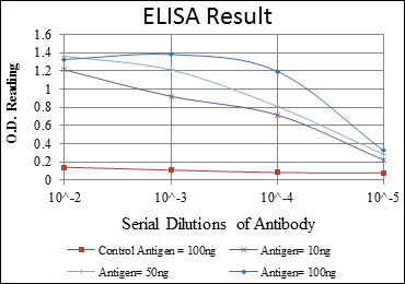 Red: Control Antigen (100ng); Purple: Antigen (10ng); Green: Antigen (50ng); Blue: Antigen (100ng);