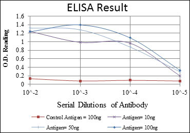 Red: Control Antigen (100ng); Purple: Antigen (10ng); Green: Antigen (50ng); Blue: Antigen (100ng);