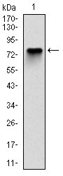 Figure 1: Western blot analysis using MCM2 mAb against human MCM2 (AA: 16-232) recombinant protein. (Expected MW is 50.4 kDa)