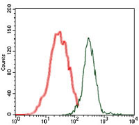 Figure 2: Flow cytometric analysis of MCF-7 cells using human Splunc2 mouse mAb (green) and negative control (red). |