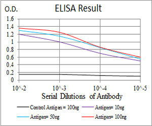 Figure 2:Black line: Control Antigen (100 ng); Purple line: Antigen(10ng); Blue line: Antigen (50 ng); Red line: Antigen (100 ng);