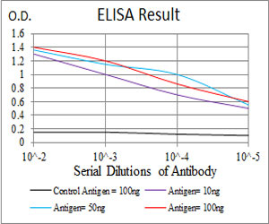 Figure 1:Black line: Control Antigen (100 ng); Purple line: Antigen(10ng); Blue line: Antigen (50 ng); Red line: Antigen (100 ng);