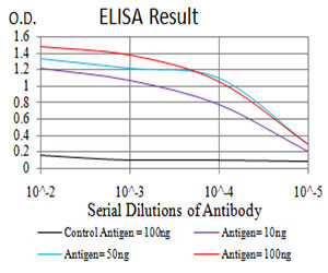 Figure 1:Black line: Control Antigen (100 ng);Purple line: Antigen (10ng); Blue line: Antigen (50 ng); Red line:Antigen (100 ng)
