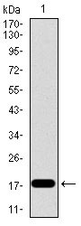 Figure 1: Western blot analysis using ID2 mAb against human ID2 recombinant protein. (Expected MW is 17.3 kDa)