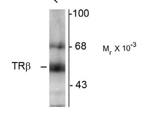 Western blot of hippocampal lysate showing specific immunolabeling of the ~58k TR-β protein. |