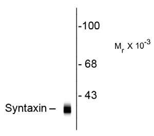 Western blot of rat cortex lysate showing specific immunolabelingof the ~ 36k syntaxin 1A protein. |