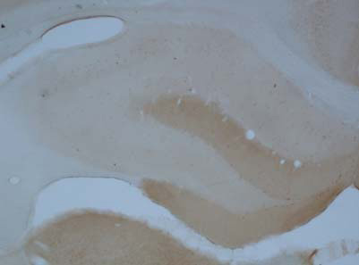 Immunohistochemical staining of rat hippocampus showing specificlabeling of the GABA A receptor, δ subunit. |