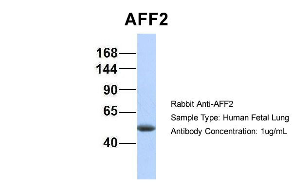 This is a rabbit polyclonal antibody against AFF2. It was validated on Western Blot using a cell lysate as a positive control. Abgent strives to provide antibodies covering each member of a whole protein family of your interest. We also use our best efforts to provide you antibodies recognize various epitopes of a target protein. For availability of antibody needed for your experiment, please inquire (sales@abgent.com).