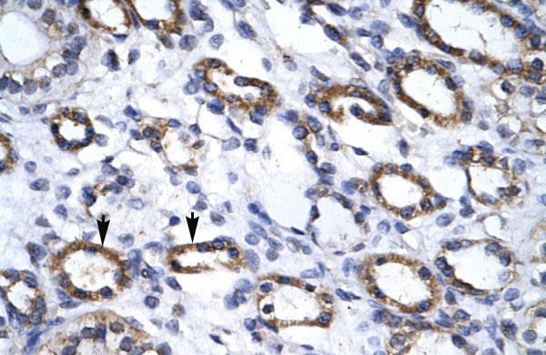 APG4B antibody - C-terminal region (APG01914G) in Human kidney cells using Immunohistochemistry Human kidney