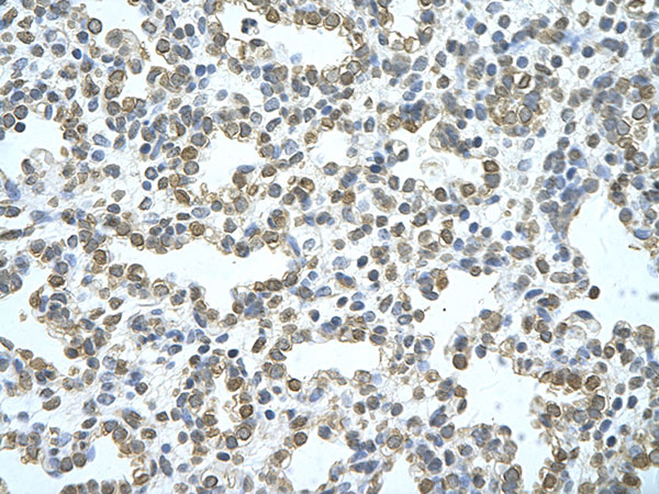 Human Lung Rabbit Anti-ATG4B Antibody Paraffin Embedded Tissue: Human alveolar cell Cellular Data: Epithelial cells of renal tubule Antibody Concentration: 4.0-8.0 μg/ml Magnification: 400X