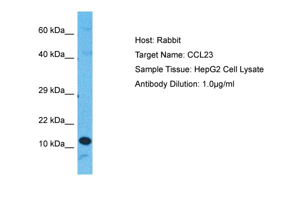Host: Rabbit Target Name: CCL23 Sample Tissue: HepG2 Whole cell lysate s Antibody Dilution: 1.μg/ml |