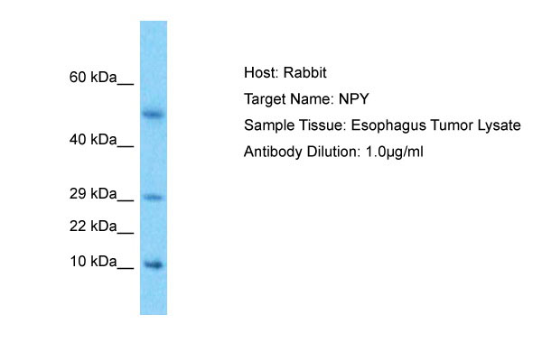 Host: Rabbit Target Name: NPY Sample Tissue: Esophagus Tumor lysates Antibody Dilution: 1.0μg/ml |