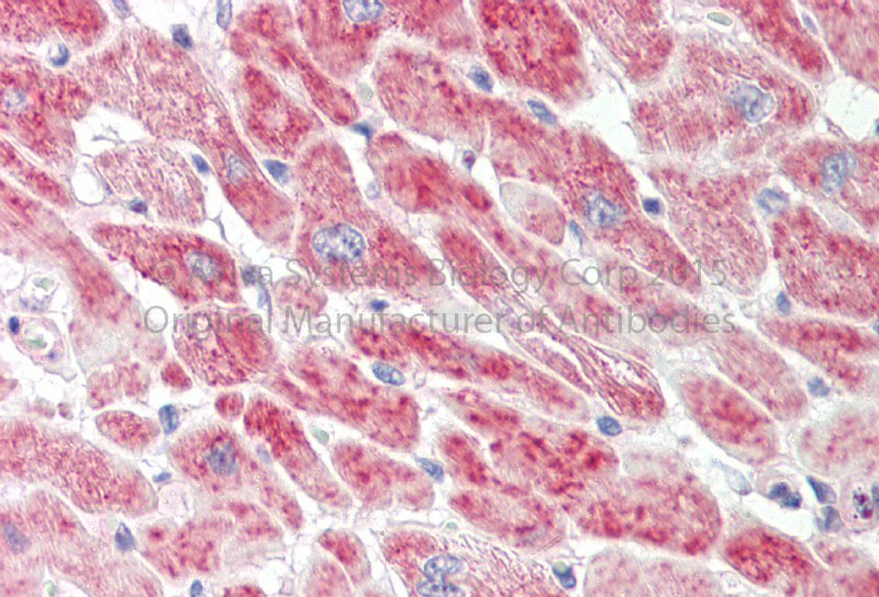 Rabbit Anti-AGPAT2 antibody Formalin Fixed Paraffin Embedded Tissue: Human Adult Heart Observed Staining: Cytoplasm in hepatocytes Primary Antibody Concentration: 1:600 Secondary Antibody: Donkey anti-Rabbit-Cy3 Secondary Antibody Concentration: 1:200 Magnification: 20X Exposure Time: 0.5 ?€“ 2.0 sec
