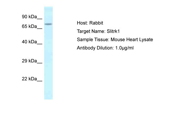 Host: Rabbit Target Name: Slitrk1 Sample Tissue: Mouse Heart lysates Antibody Dilution: 1.0μg/ml |