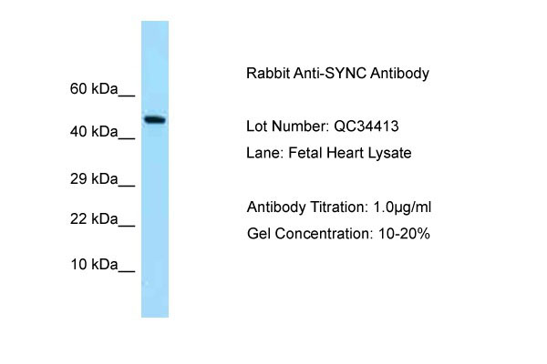 Host: Rabbit Target Name: SYNC Sample Tissue: Fetal Heart Antibody Dilution: 1.0μg/ml |