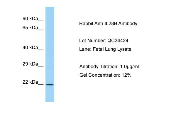 Host: Rabbit Target Name: IL28B Sample Tissue: Fetal Lung Antibody Dilution: 1.0μg/ml |