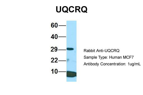 Host:Rabbit Target Name:UQCRQ Sample Tissue:Human MCF7 Antibody Dilution: 1.0μg/mlUQCRQ is supported by BioGPS gene expression data to be expressed in MCF7 |