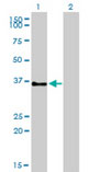Western blot of GPR3 expression in transfected 293T cell line by GPR3 monoclonal antibody clone... |