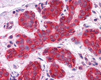 Anti-Gamma Catenin antibody IHC of human breast.