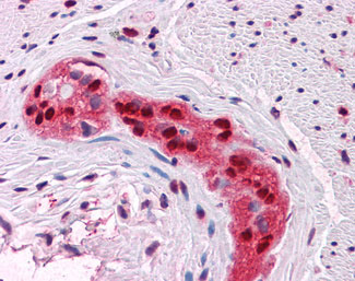 Anti-SOX9 antibody IHC of human colon, myenteric plexus. |