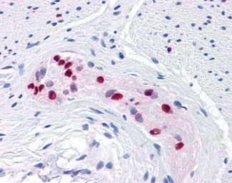 Anti-SOX9 antibody IHC of human colon, myenteric plexus. |