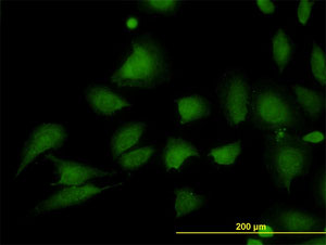 Immunofluorescence of monoclonal antibody to STIM1 on HeLa cell (antibody concentration 10 ug/ml).