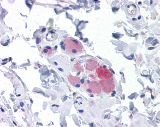 Anti-STIM1 antibody IHC of human small intestine, submucosal plexus. |