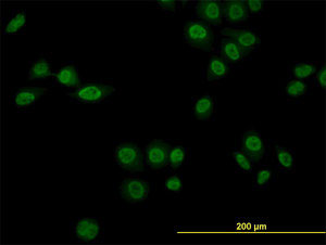 Immunofluorescence of monoclonal antibody to NR1D1 on HeLa cells (antibody concentration 10 ug/ml). |