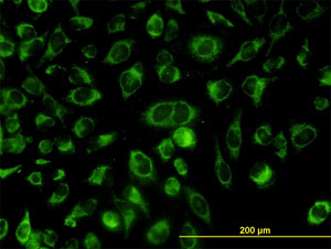 Immunofluorescence of monoclonal antibody to ACOT9 on HeLa cell (antibody concentration 10 ug/ml).