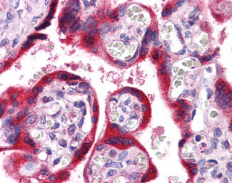 Anti-ATP6V1D antibody IHC of human placenta. |