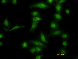 Immunofluorescence of monoclonal antibody to AKR1B10 on HeLa cell (antibody concentration 10 ug/ml).