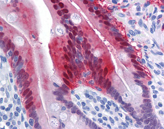 Anti-AKR1B10 antibody IHC of human small intestine. |
