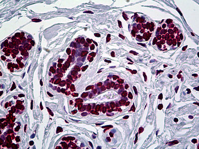 Anti-EN1 antibody IHC of human breast. |