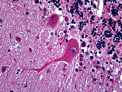 Anti-HTT / Huntingtin antibody IHC of human brain, cerebellum. |