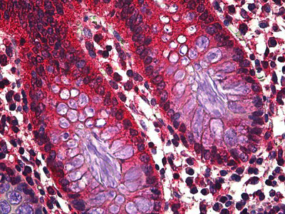 Anti-Ghrelin antibody IHC of human colon, epithelium. |