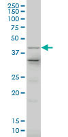 Western blot of LHX4 expression in human spleen with LHX4 monoclonal antibody, clone 1D6.