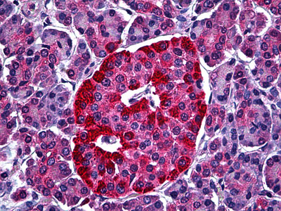 Anti-STXBP1 antibody IHC of human pancreas, islets of Langerhans. |
