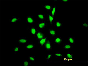 Immunofluorescence of monoclonal antibody to YY1 on HeLa cell. [antibody concentration 10 ug/ml]