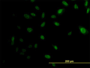 Immunofluorescence of monoclonal antibody to EP300 on HeLa cell. [antibody concentration 10 ug/ml] |