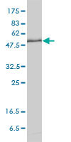 Western blot of KPNA1 expression in transfected 293T cell line by KPNA1 monoclonal antibody.